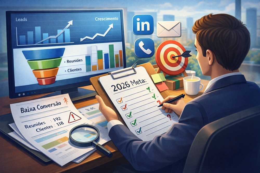 Mais do que “ajustar mensagens” ou “testar um novo canal”, 2026 exige decisões baseadas em dados reais, aprendizados de 2025 e metas que façam sentido para a realidade do seu time comercial.